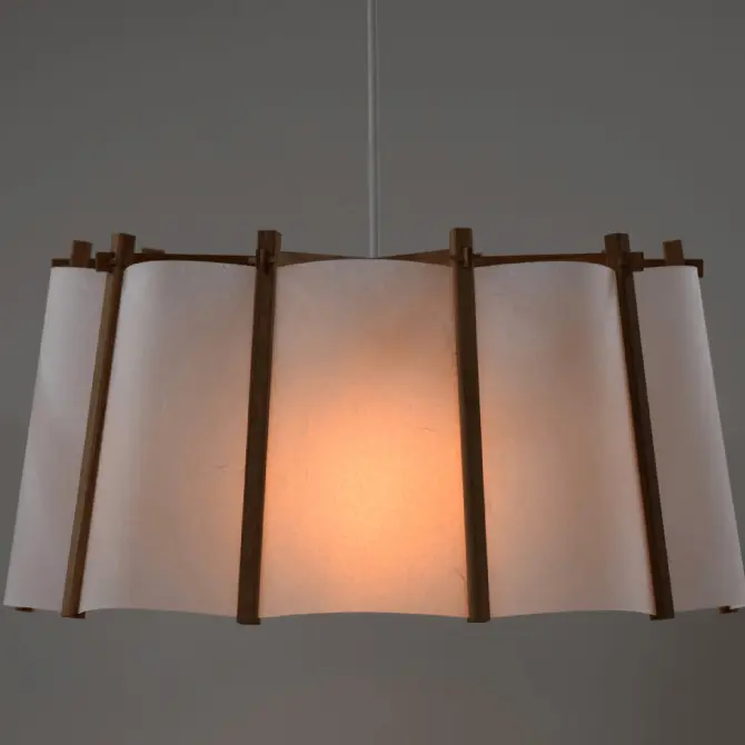 木で作り出した直線と、ワーロン紙の優しい曲線。 この対照的な2つのラインがバランス良く調和し、シンプルでスタイリッシュな デザインに仕上げました。