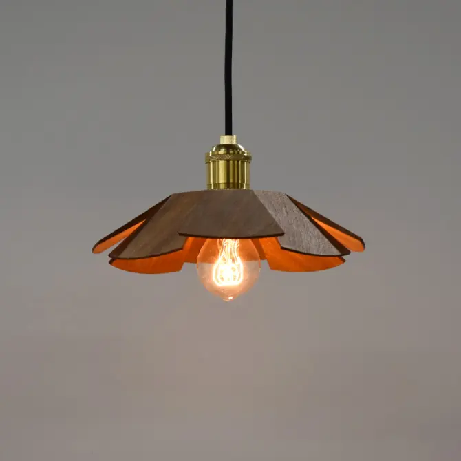 板材を巧みに折り曲げ、花びらのようなデザインにしました。 花びらの角度を交互に変化させることで、隙間から優しい光が漏れます。 小柄ながらも空間にアクセントを加えるような照明です。